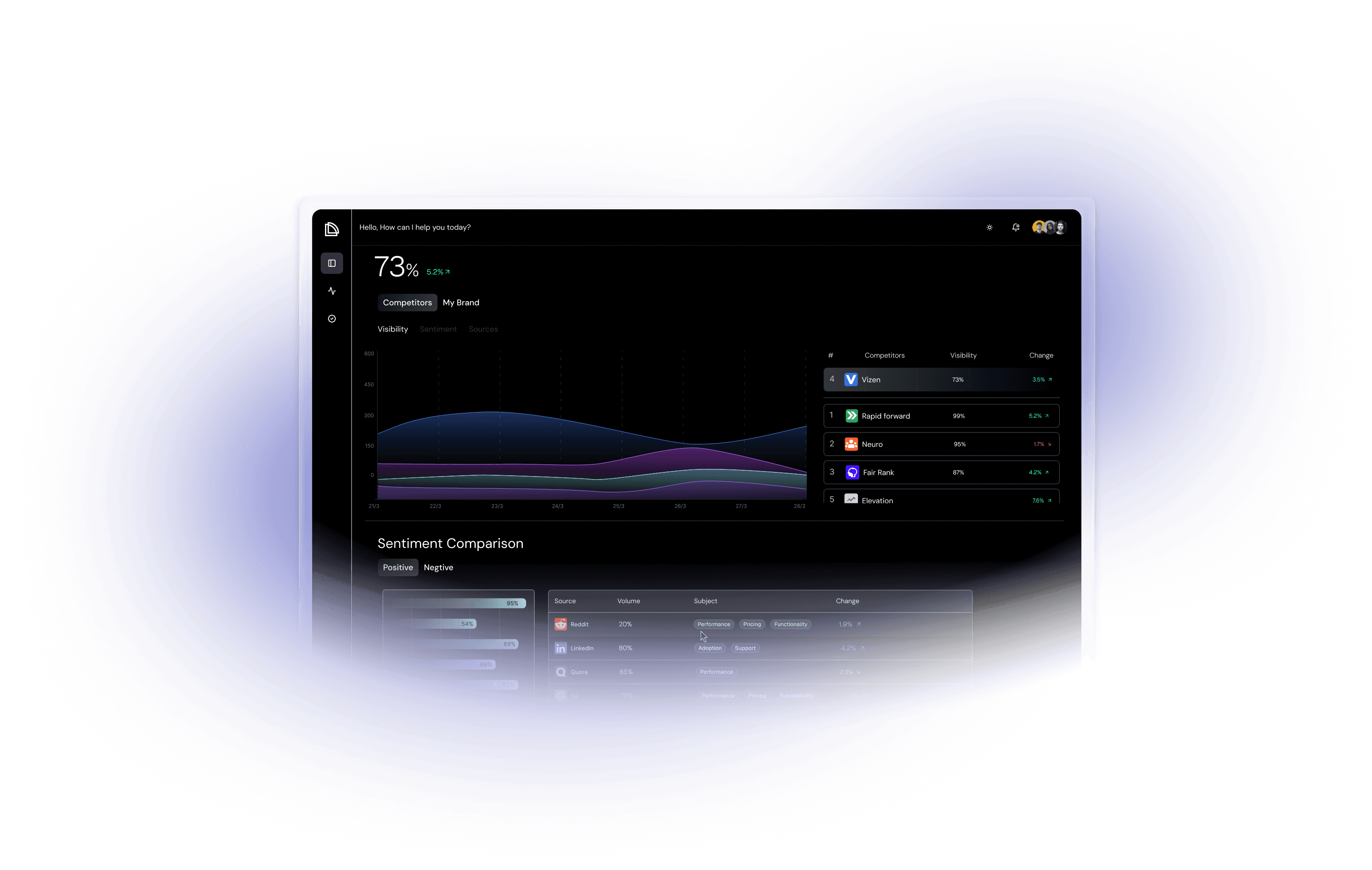 See every topic, provider, and sentiment in one place. Spot gaps, measure momentum, and get the exact steps to rise as AI’s favorite answer.